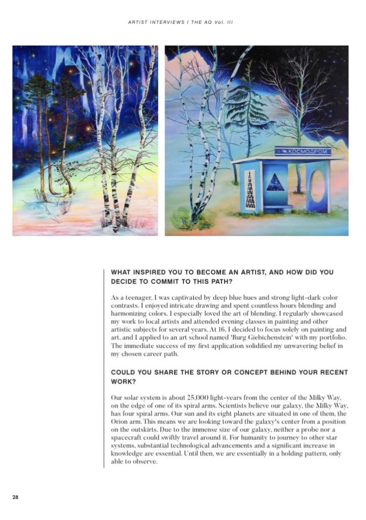 I am pleased to announce that my work has been selected for inclusion in the AQ Volume IV catalog, which highlights the achievements of remarkable women and non-binary artists. The publication is scheduled for release at the end of November 2024. It is a significant honor to have my work chosen from nearly 300 applicants, and I regard this opportunity as an exceptional platform for showcasing my paintings in a beautifully designed, collectible format.