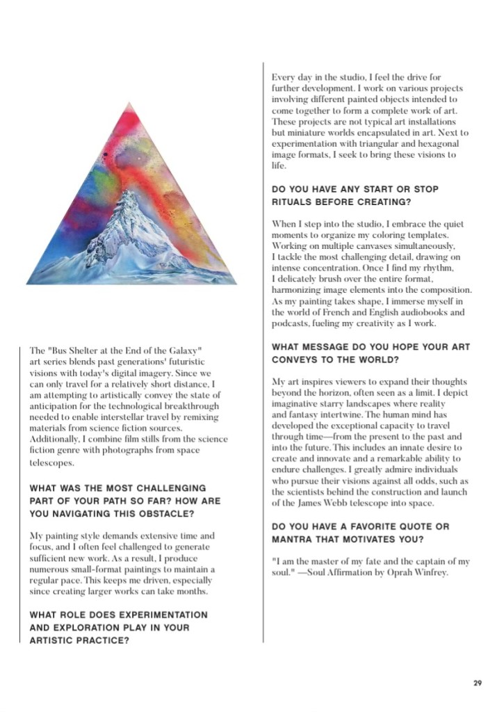 Create! Magazine is a proudly independent, women-owned, artist-run platform committed to amplifying the voices and works of emerging and mid-career creatives worldwide. The mission of Create! Magazine is to offer an inclusive, supportive, and transparent space for artists of diverse backgrounds, identities, and experiences to share their stories and artworks with a wider audience.