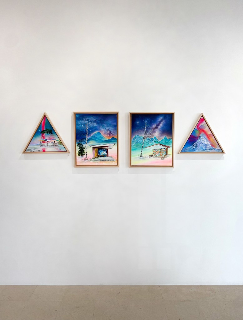 suas pinturas, que retratam predominantemente o céu noturno com galáxias,