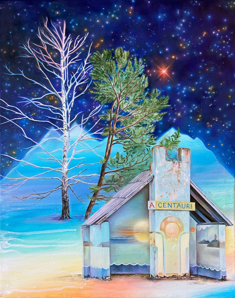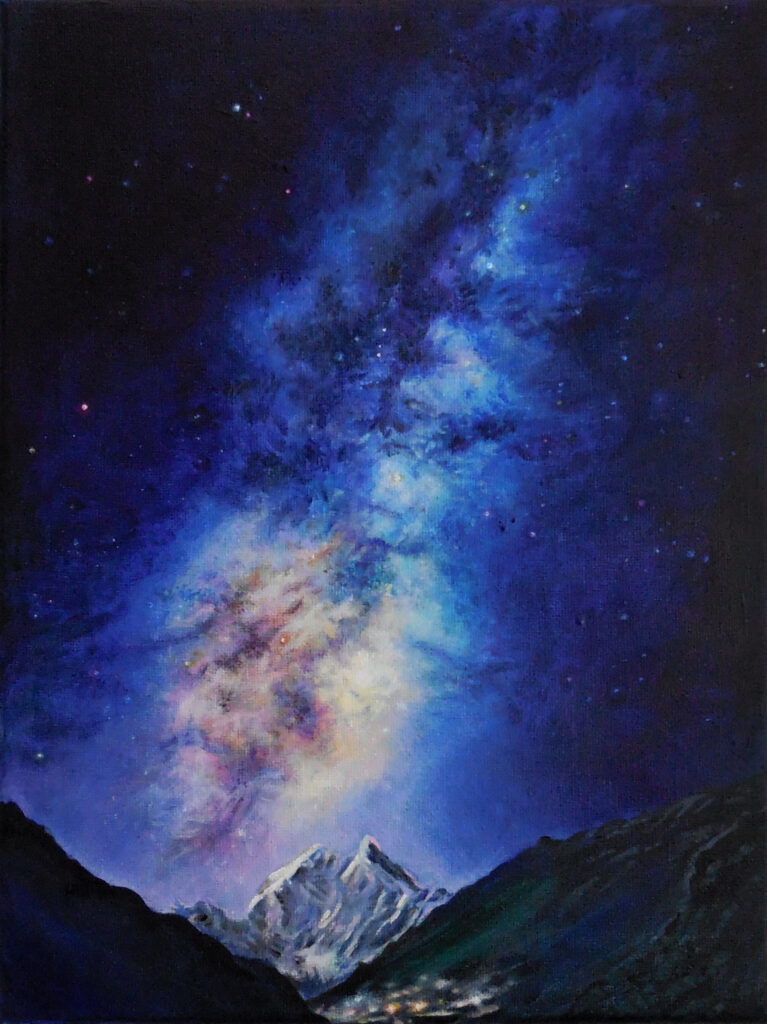 The series explores the interplay between human presence and the immensity of the cosmos. Each small-scale composition functions as a quiet meditation on observation, scale, and wonder, allowing the viewer to inhabit spaces where night, light, and solitude converge. In this dialogue of intimacy and expansiveness, Celestial Silence transforms these delicate studies into portals to the sublime, revealing how the vastness of the northern heavens can be experienced on a profoundly personal scale.